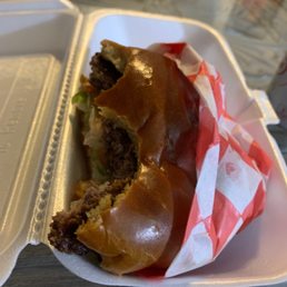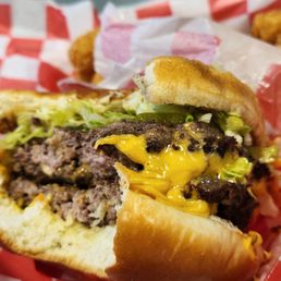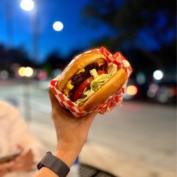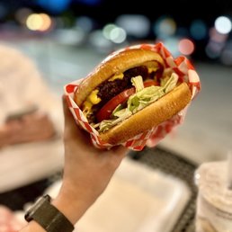 Delicious burger you can tell beef is fresh not frozen. Soft bun everything stayed together even though it is huge! Drive through available with a push button. Convenient and menu suggestions.
